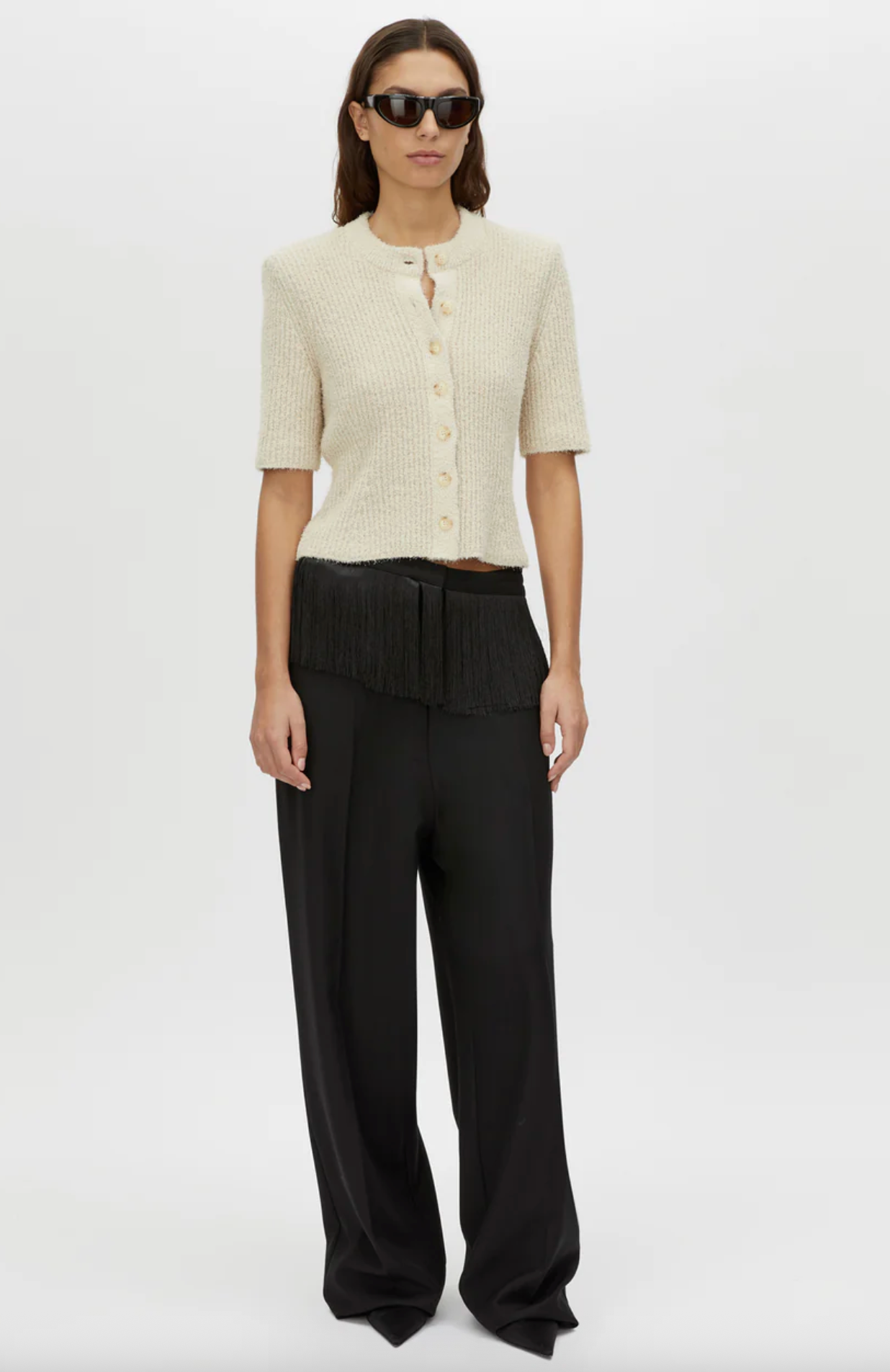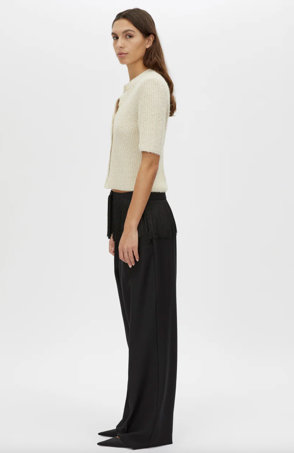 CAMILLA AND MARC Zylus straight-leg, mid-rise cropped elasticated pant in navy/white. Contrast embroidered monogram, side seam piping, centre front pintuck. Atelier Notes: 100% cotton. - Mid-rise, true to size- Model...