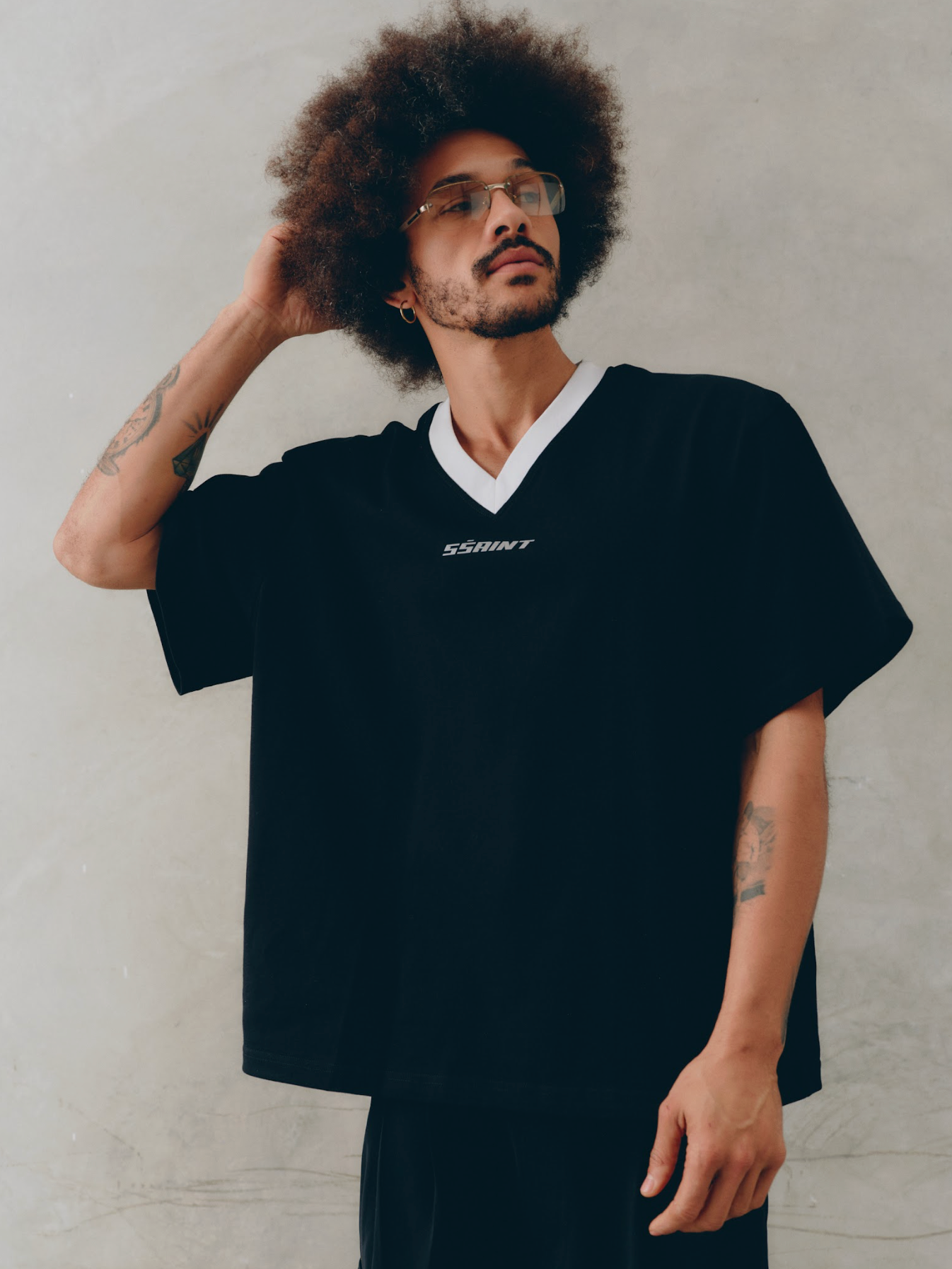 Cut with a clean V-neckline and contrast collar, this long sleeve tee is a nod to classic sportswear with a modern edge. Finished with the SŚAINT silver reflective logo, it’s equal parts statement and staple.